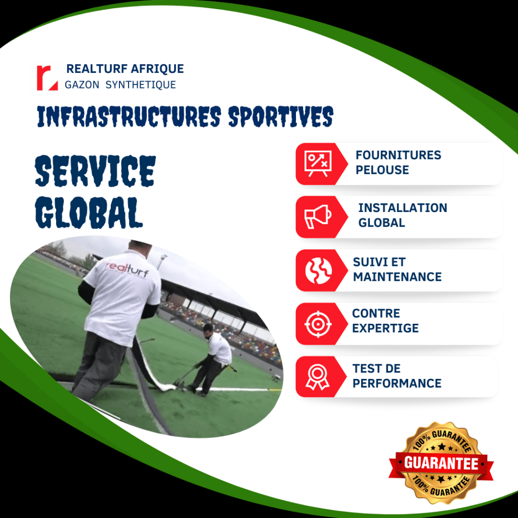 Gazon homologué FIFA : Nous utilisons exclusivement des gazons certifiés FIFA Quality et FIFA Quality Pro, garantissant des performances et une durabilité exceptionnelles.